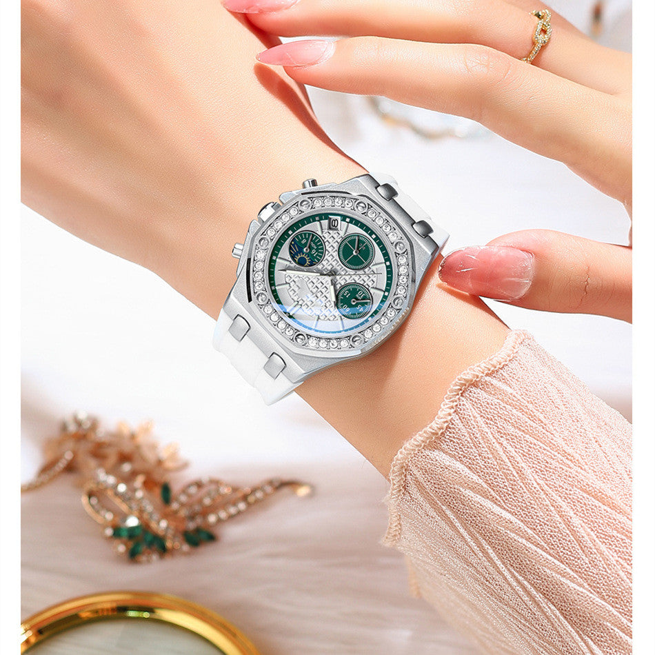 Multi-functional Women's Watch Moon Timing Three-Eye Diamond